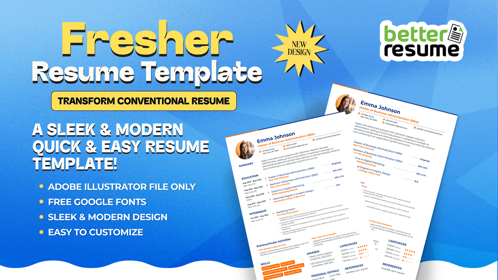 Are you a recent graduate eager to kickstart your professional journey? Look no further! Better Resume is thrilled to present our meticulously crafted resume template, tailor-made for freshers like you.